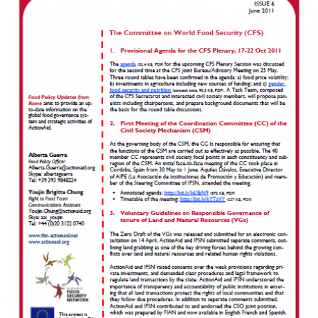 Food Policy Updates from Rome aims to provide an up-to-date information on the global food governance system and strategic activities of ActionAid.